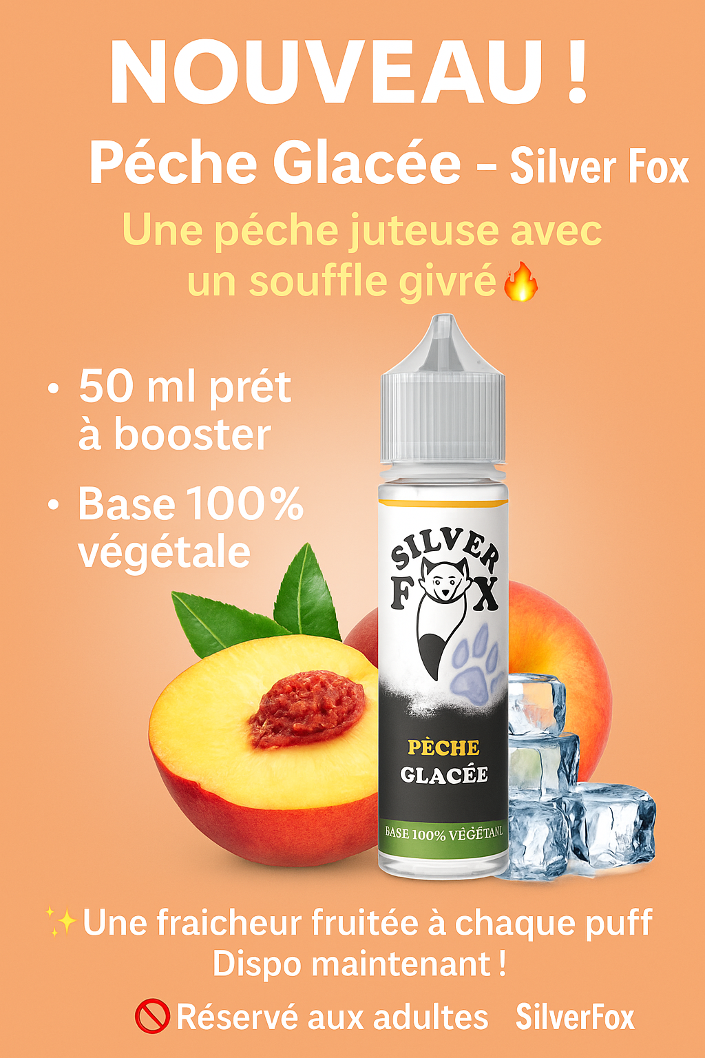 DĂ©couvrez lâe-liquide PĂȘche GlacĂ©e Silver Fox, un mĂ©lange rafraĂźchissant et naturel conçu pour les vapoteurs exigeants. Avec sa composition 100 % vĂ©gĂ©tale, ce liquide de 50 ml offre une saveur authentique de pĂȘche juteuse sublimĂ©e par une touche glacĂ©e, pour une expĂ©rience de vape pure et Ă©quilibrĂ©e. IdĂ©al pour ceux qui recherchent une alternative saine sans compromis sur le goĂ»t.